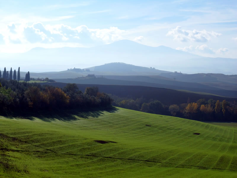E' bello inoltrarsi anche in qualche strada bianca della campagna. Sono facilmente percorribili e si può godere di scorci e prospetti panoramici davvero emozionanti. Da segnalare anche Chiusure, vicinissimo alla Abbazia di Monte Oliveto, Lucignano d'Asso, Montisi, Montefollonico. Piccoli e incantevoli borghi panoramici, con qualche bar e trattorie dal sapore di altri tempi.