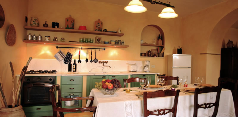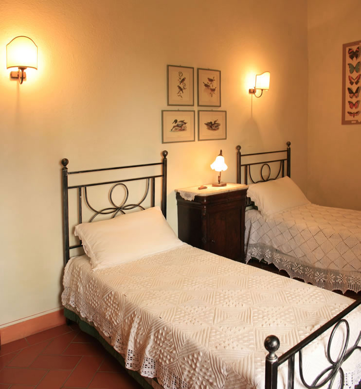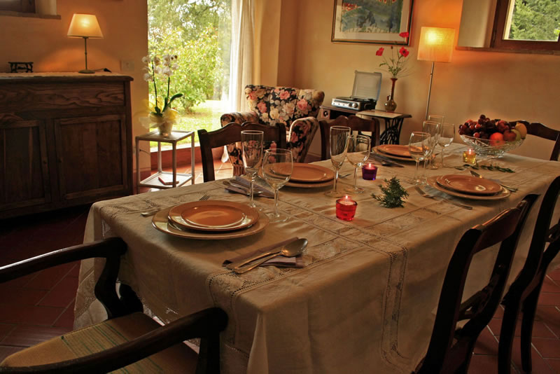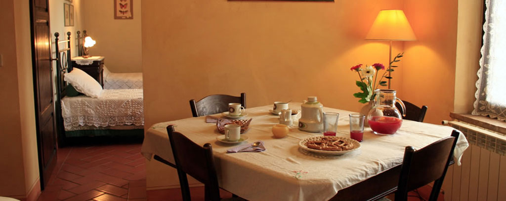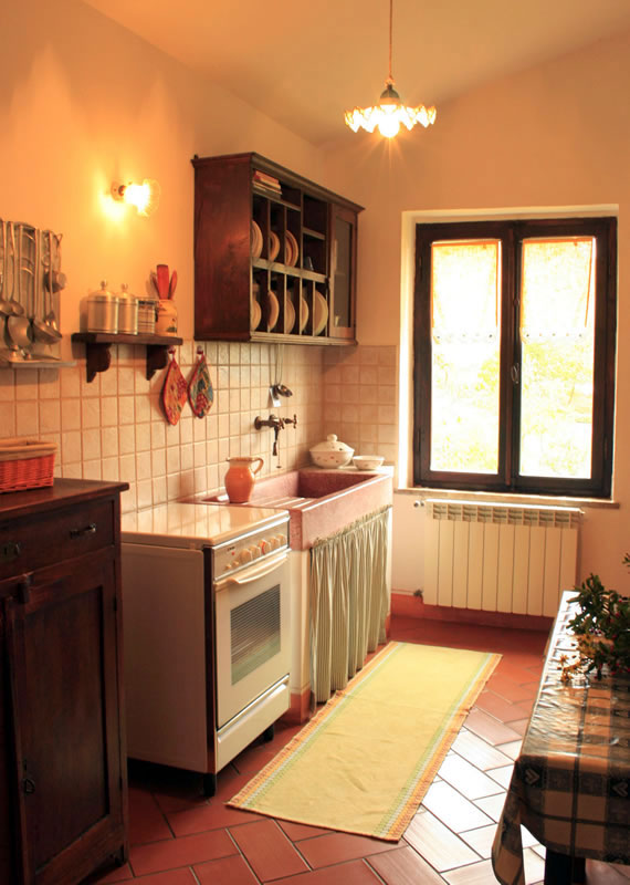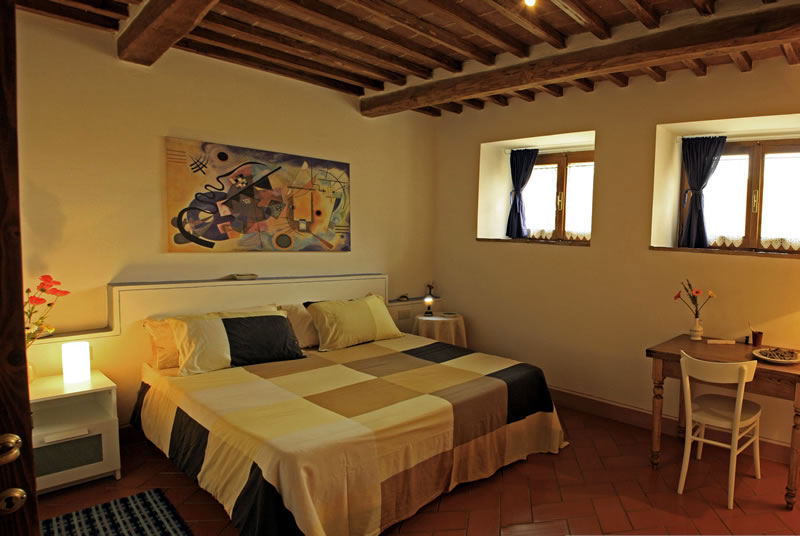 E' al piano alto e dispone di due camere: una doppia e un'altra con due letti. La cucina è arredata in stile vecchia toscana con un piccolo tavolo per mangiare. Si può pranzare pure sul tavolo più grande del soggiorno, dove si trovano anche i divani e un bel camino. Molto gradevole e panoramico è il "balzolo aperto", sopra la scala d'ingresso, dove è possibile consumare il pasto o, semplicemente, stare seduti a bere vino con una vista a tutto campo. Sul retro dell'appartamento c'è una terrazza, in parte coperta, con un grande tavolo e alcune poltrone di vimini: una buona soluzione per stare all'aperto anche in condizioni climatiche non eccellenti.
