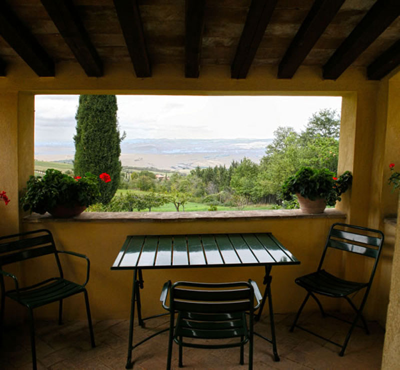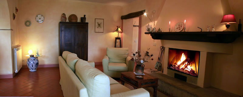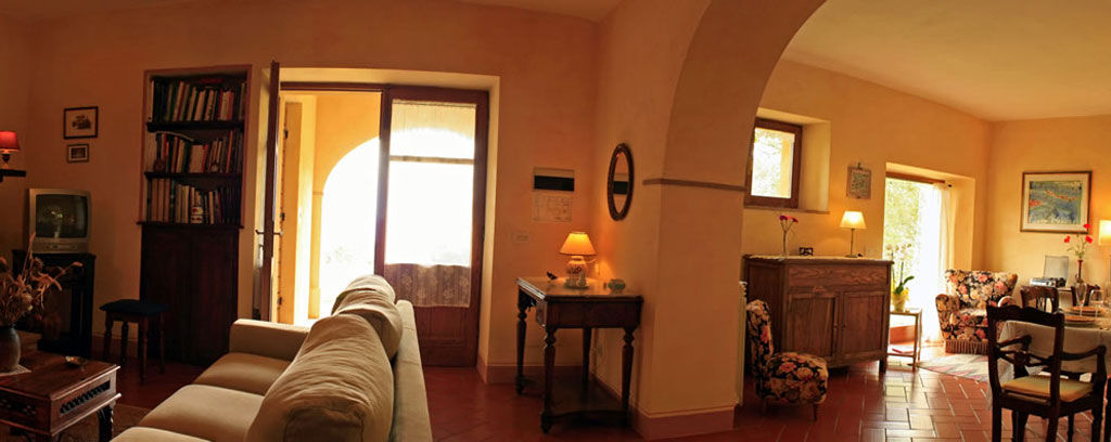 Ha una camera doppia ed un ampio salone con zona cucina, separata dal soggiorno da un grande arco. Si può pranzare nel grande tavolo ed apprezzare il calore del camino acceso nei periodi più freddi. Durante la bella stagione è sicuramente più piacevole mangiare sotto il panoramico portico, che dà sull'aia o nell'aia stessa, per godere appieno della vista della campagna e di Pienza.